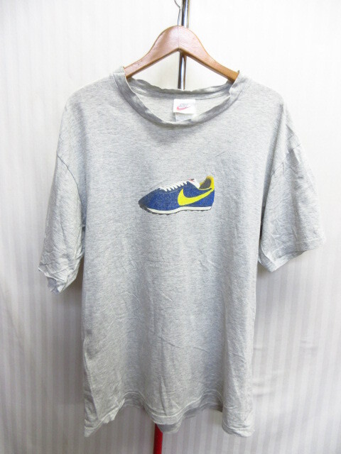 > ナイキ 90sヴィンテージ コルテッツ柄Tシャツ メンズL グレー 靴 スニーカー柄Tシャツ 半袖カットソー 半袖シャツ ダメージTシャツ08084