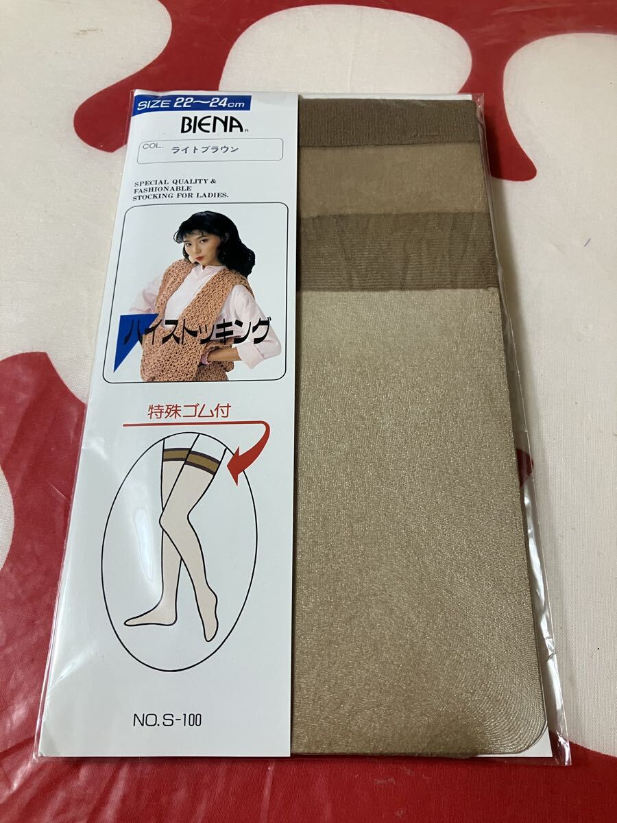 > biena ハイストッキング 特殊ゴム付 ライトブラウン 22-24cm 日本製 high stocking ナイロン66 100% ビエナ ひざ上 オーバーニー overknee