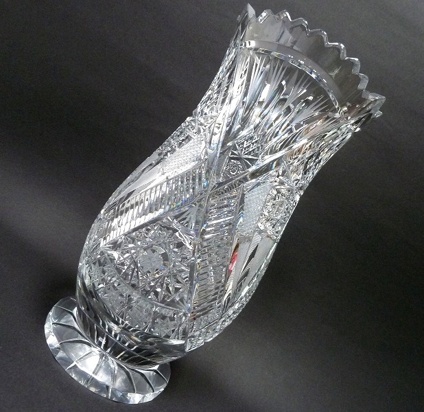 - (☆BM)クリスタルガラス 花瓶(0528-①)フラワーベース 高さ25㎝ 花器 カットガラス クリア クラッシックレトロ