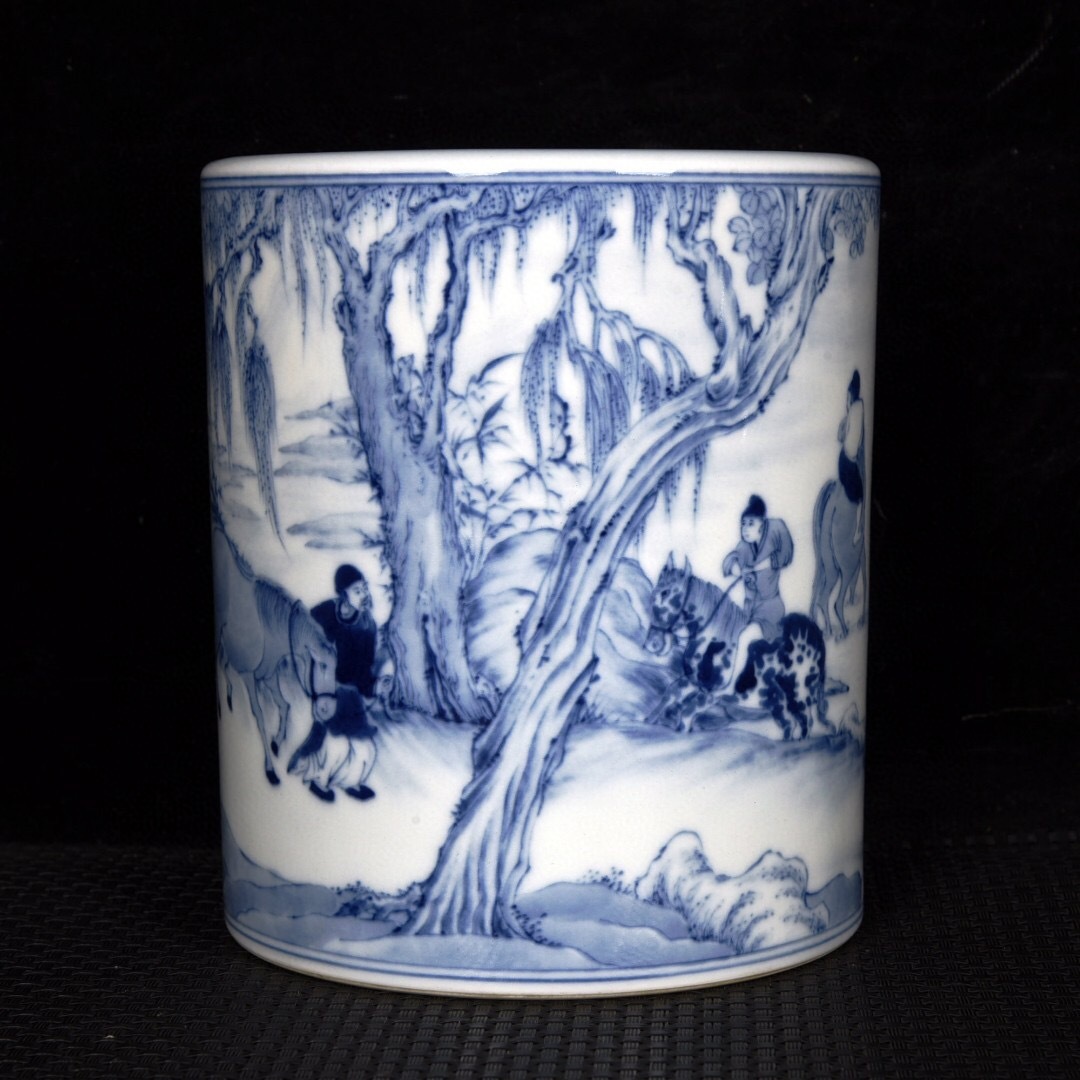 - 『館蔵珍品 清 乾隆年製款 古陶瓷品 青花 浴馬紋 筆筒』置物 賞物 貴重物品 収蔵品 中国古美術