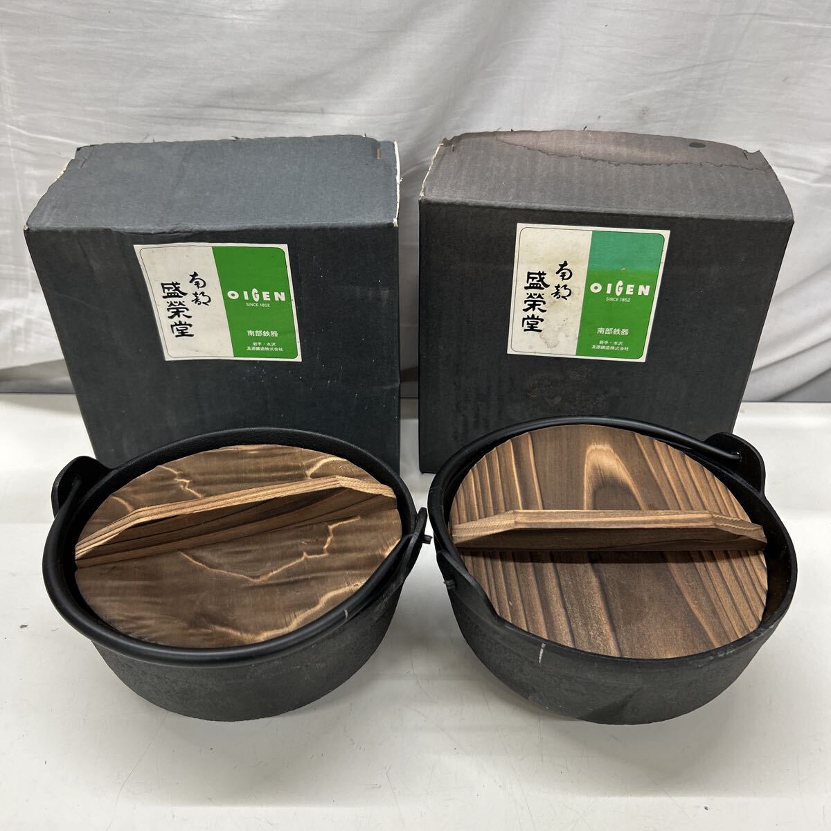> 710★70813-⑦ 盛栄堂 OIGEN 丸鍋 5寸 F-015 長期保管品 鍋 2個セット 調理器具 鉄器 鉄鍋 木蓋