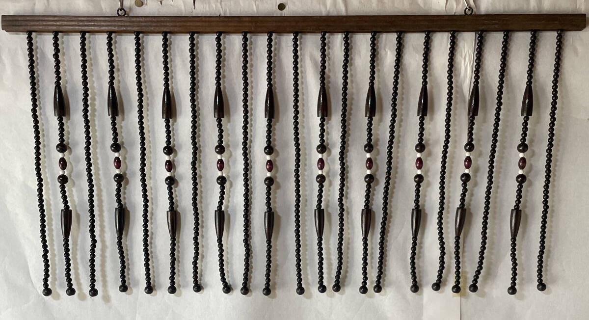 - 【昭和レトロ】丈の短い(幅85㎝×高さ42㎝)木製 珠のれん 玉のれん ビーズのれん 暖簾 珠簾 たますだれ のれん