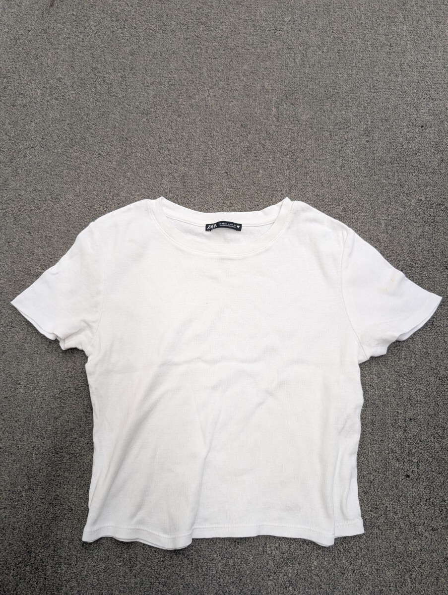 - 【ZARA ホワイト 半袖 Tシャツ Mサイズ】ト リブカットソー 古着 ザラ 半袖 Tシャツ カットソー ホワイト