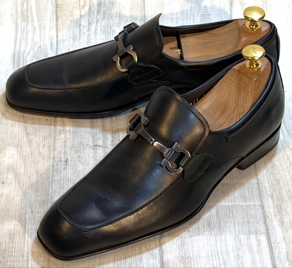 - Salvatore Ferragamo フェラガモ◆24.5cm 7 D◆ガンチーニ モカシン 革靴 本革 ローファー ビジネスシューズ ドレスシューズ ITALY製 黒 靴