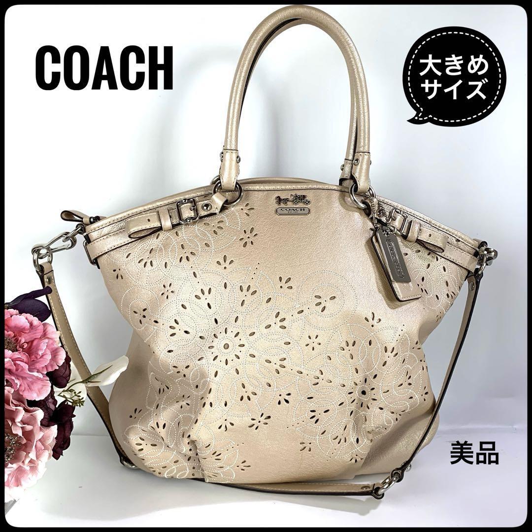 - コーチ ハンドバッグ ショルダーバッグ パンチング 加工 パールベージュ 美品