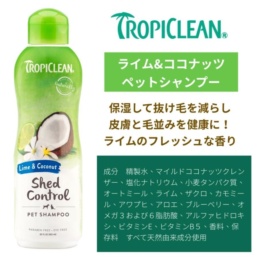 > トロピクリーン犬猫用シャンプー・ライム&ココナッツ・米国製・Tropiclean Lime&Coconut Shed Control Pet Shampoo 抜け毛を抑える