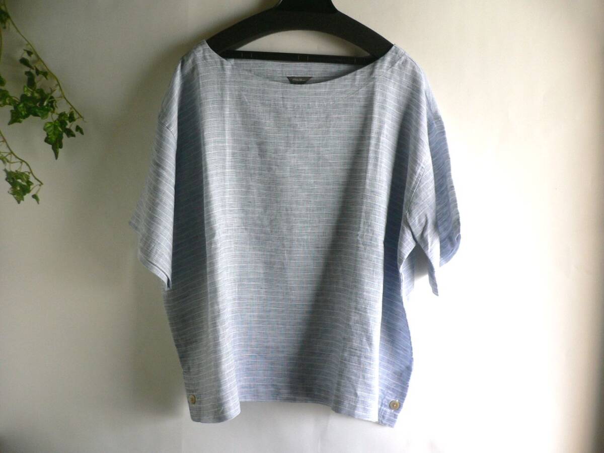 - EddieBauer エディバウワー 麻リネン ノーカラーシャツブラウス 13号 大きいサイズ LL