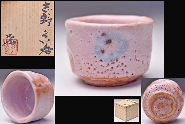 - 加藤孝造 ★ 志野 ぐい呑 ★ 共箱 ★ 酒器 ★ 人間国宝 ★ 師: 荒川豊蔵 氏 ★ ピンク色が美しい逸品 ★ 志野焼 ★ 酒杯 ★ 杯 ★ 盃 ★