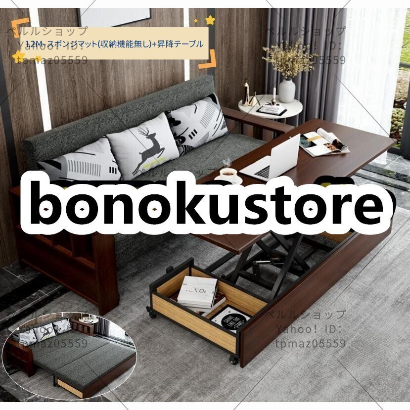 > ソファベッド 折りたたみベッド スポンジ/ラテックス/ココナッツパームクッション 1.2M-スポンジマット(収納機能無し)+昇降テーブル