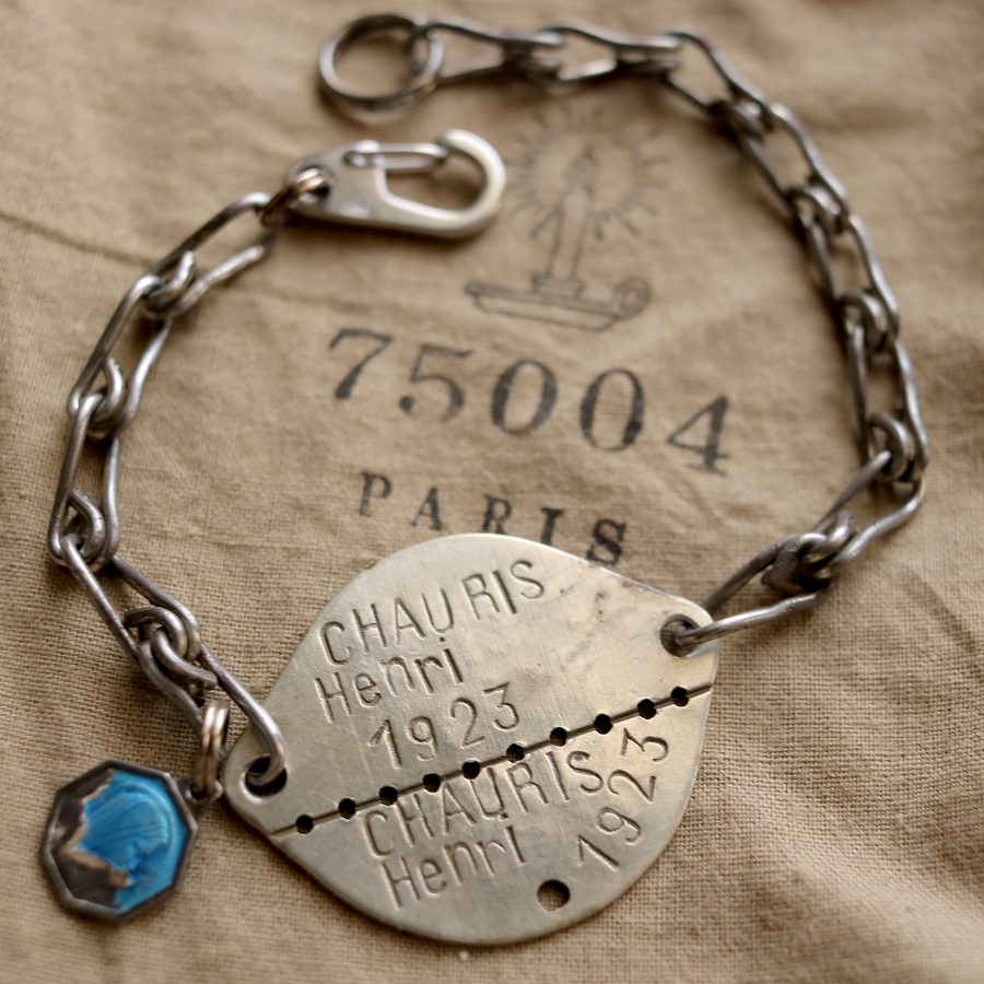 - 仏 1923年 フランスアンティーク ドッグタグ ブレスレット WW1 WW2 ビンテージ ミリタリー キリスト マリア メダイ フランス軍 プレート