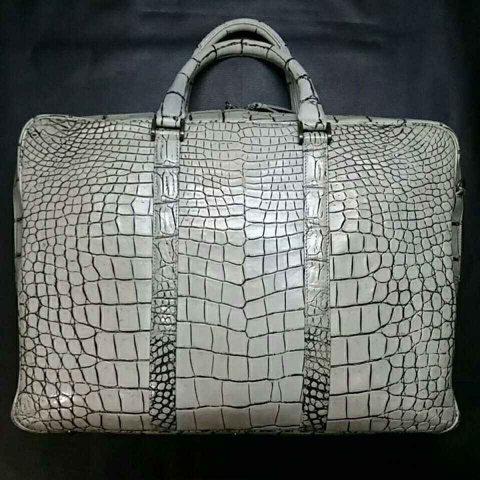 - 【最高級】JRA認定★バニラホワイト クロコダイル ビジネスバッグ メンズ★書類鞄 ブリーフケース アタッシュケース セカンドバッグ 革 皮