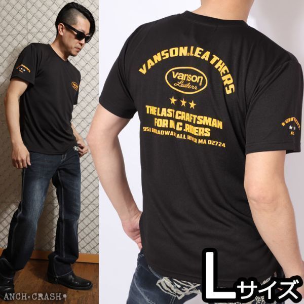 - VANSON ドライメッシュ 半袖 Tシャツ VS22802S ブラック×イエロー【Lサイズ】バンソン