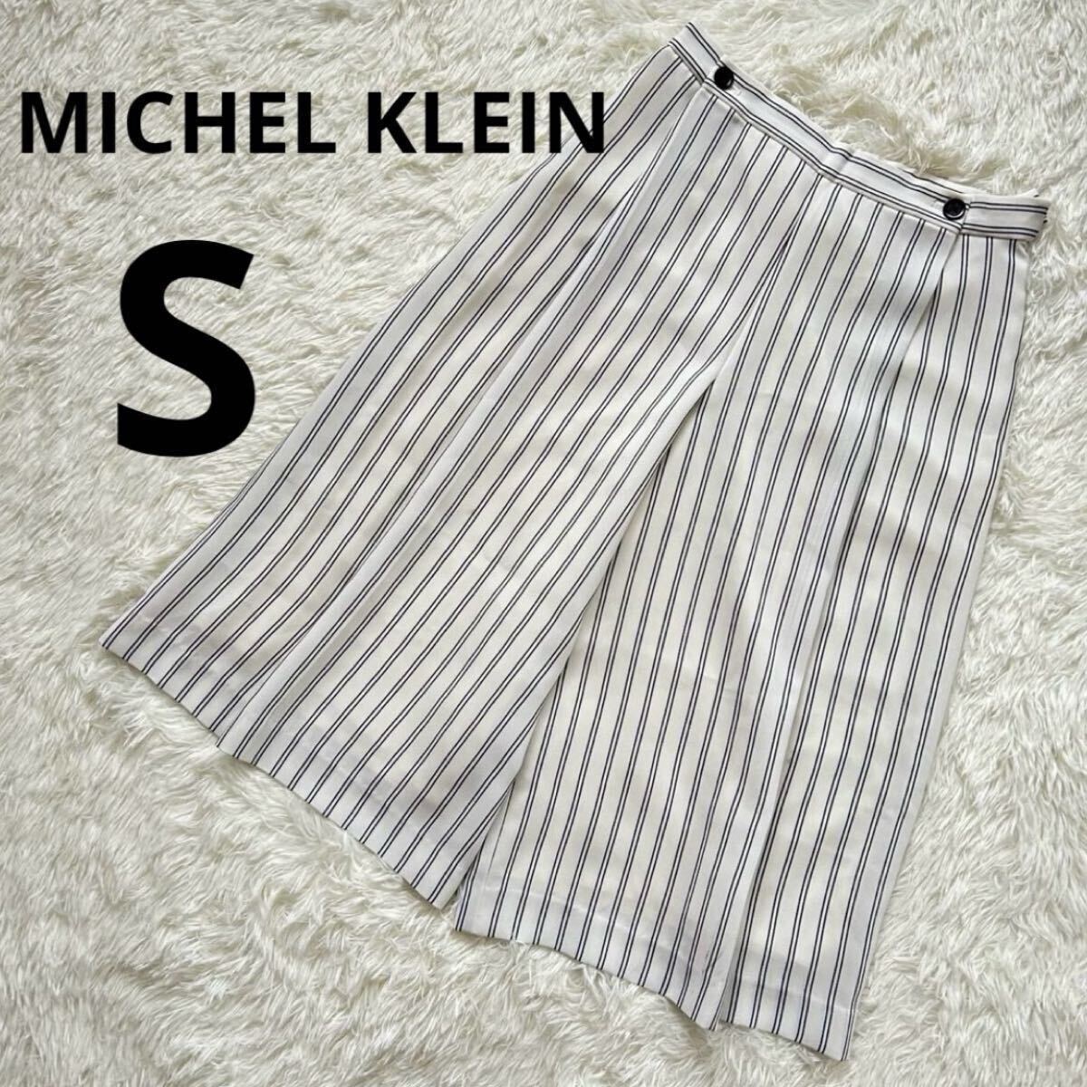 - 大特価 MICHEL KLEIN ストライプ柄 ガウチョパンツ Sサイズ ミッシェルクラン ホワイト 白 ストライプ ワイドパンツ パンツ ボトムス