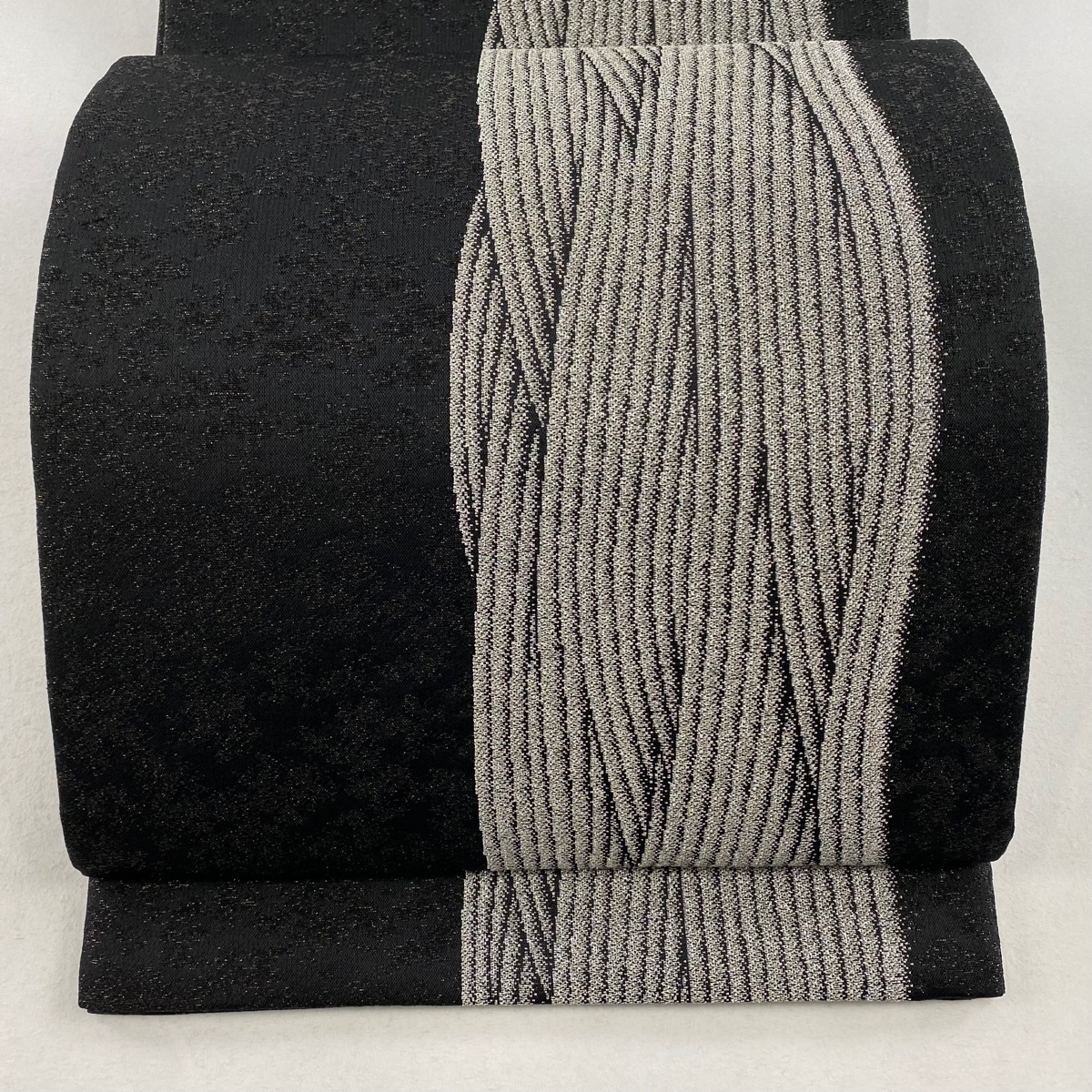 > 袋帯 美品 名品 よろけ縞 銀糸 箔 黒 全通 正絹 【中古】