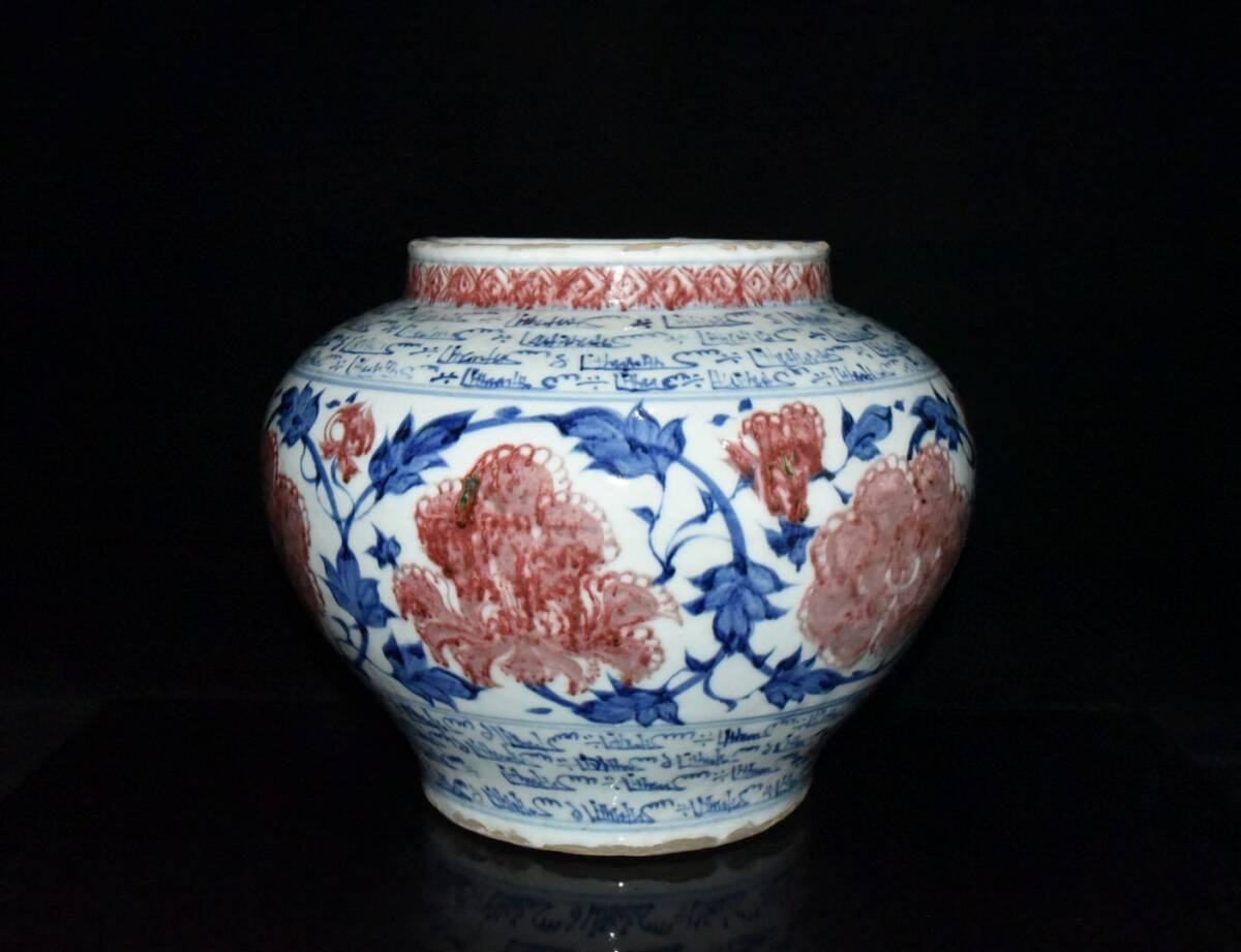 - 蔵友旧蔵出 元 白鴻孤窯 青花 釉裡紅 纏枝牡丹紋罐 稀少珍品 貴重品 古陶瓷品 置物 古賞物 中国古玩 中国古美術品