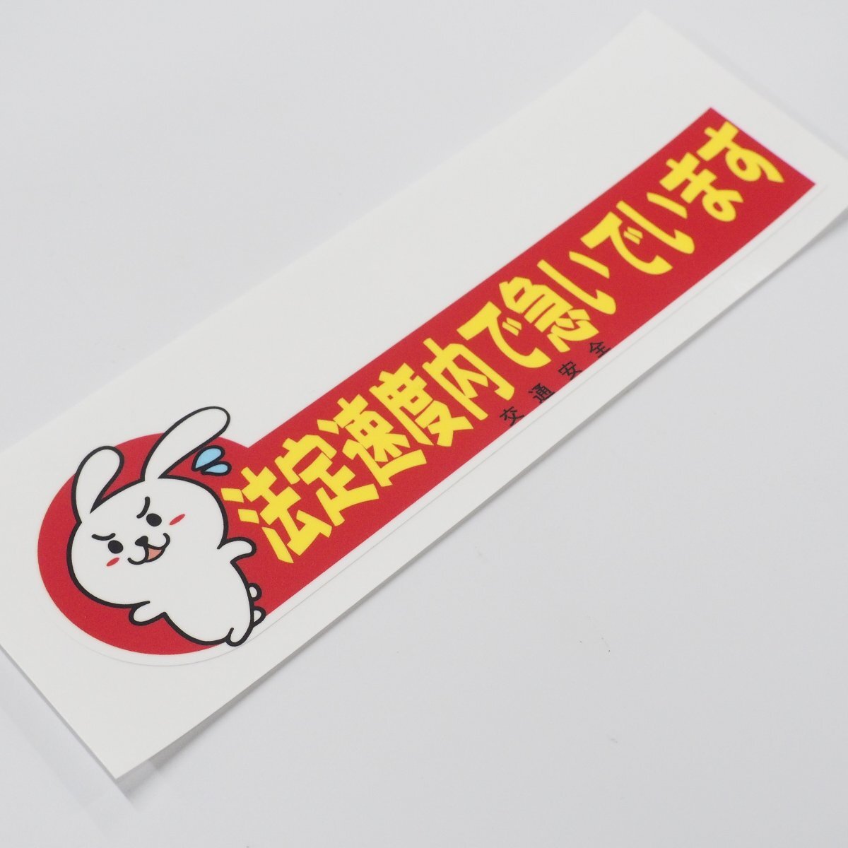 - ちょっとおもしろ パロディステッカー 法定速度内で急いでいます(赤) ウサギ 交通安全 あおり防止 かわいい トラック 車