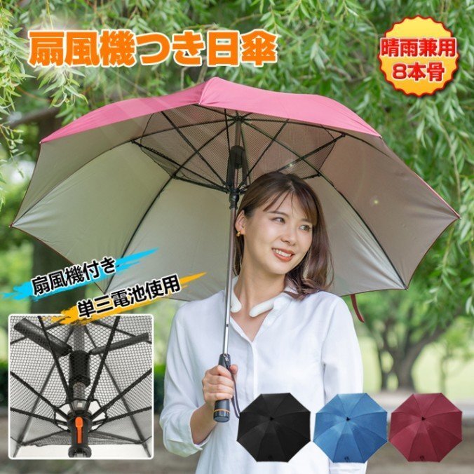 - 日傘 扇風機つき 8本骨 安全ネット付き UVカット 涼しい ファン付き 晴雨兼用 アウトドア スポーツ観戦 熱中症対策 紫外線対策 ny194