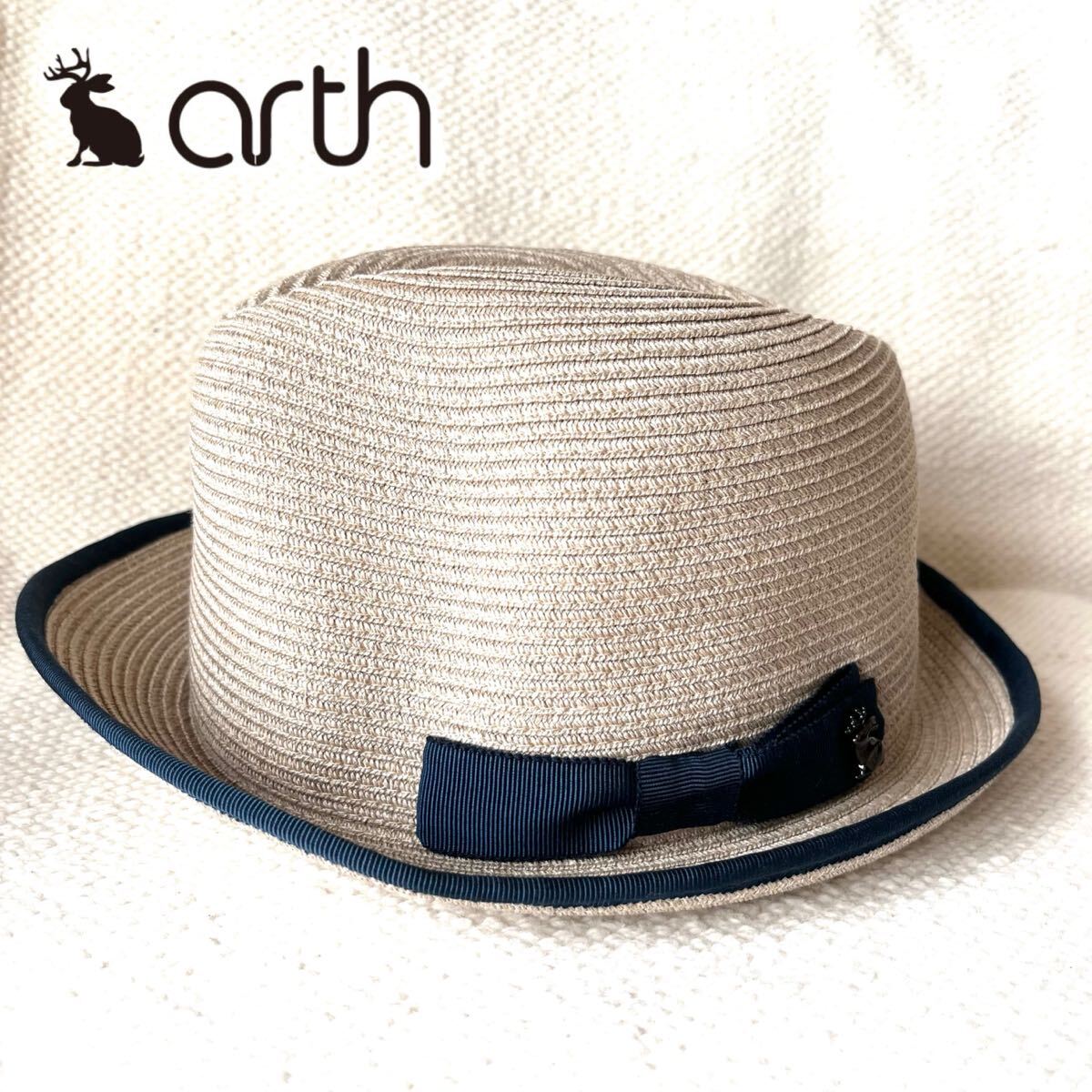 > arth アース ハット 帽子 麦わら帽子 中折れ帽子 ストローハット 59cm グレー 日本製 シルク ポリエステル レディース メンズ 男女兼用