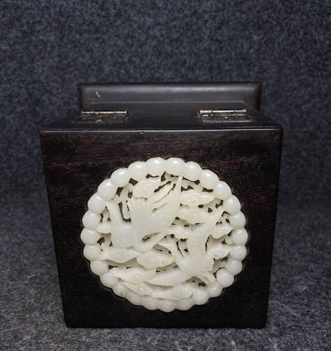 - 秘蔵 古木彫り 黒檀 モザイク白玉コレクションボックス 清代 書道具 文房具 時代物 中国古美術 細密彫 置物 賞物 唐物 木彫り 文玩 8.16