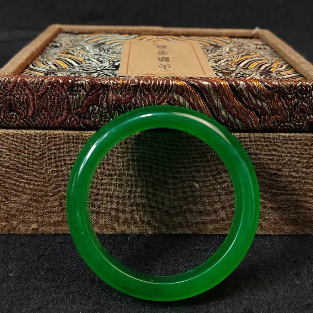 - 清代・老玉 秘藏 乾隆年制錦箱 ひすい色 腕輪 唐物 古玉彫 天然石 稀少珍品 古美術 古賞物 古置物 旧蔵 8.16