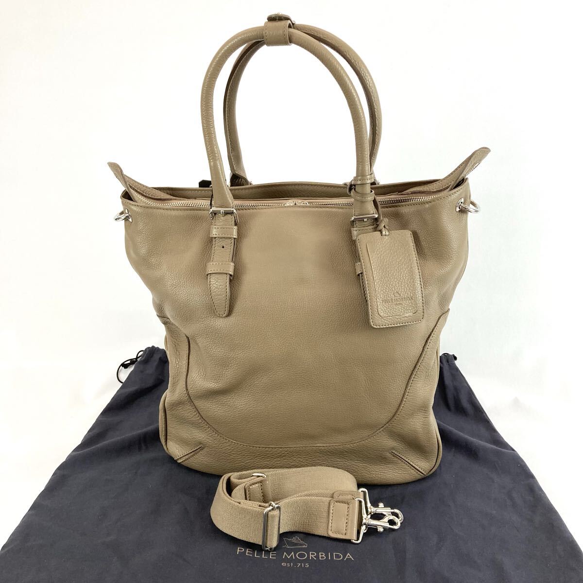- PELLE MORBIDA ペッレモルビダ 2WAYトートバッグ 牛革レザー トープ メンズ タグ付き美品