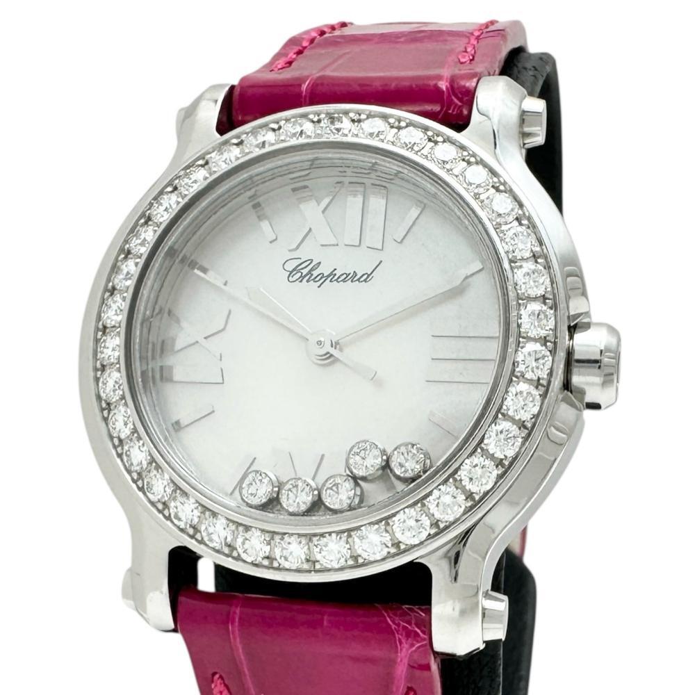 - Chopard/ショパール ハッピースポーツ 278509 ダイヤベゼル&ムーブ5P 腕時計 ステンレス/レザー/シェル クオーツ レディース