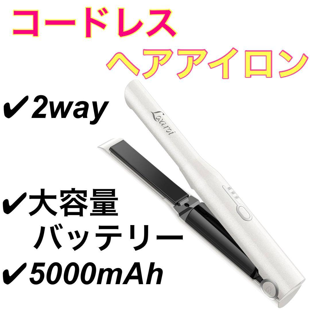 - ヘアアイロン コードレス 2way カール&ストレートUSB充電 5000mAh