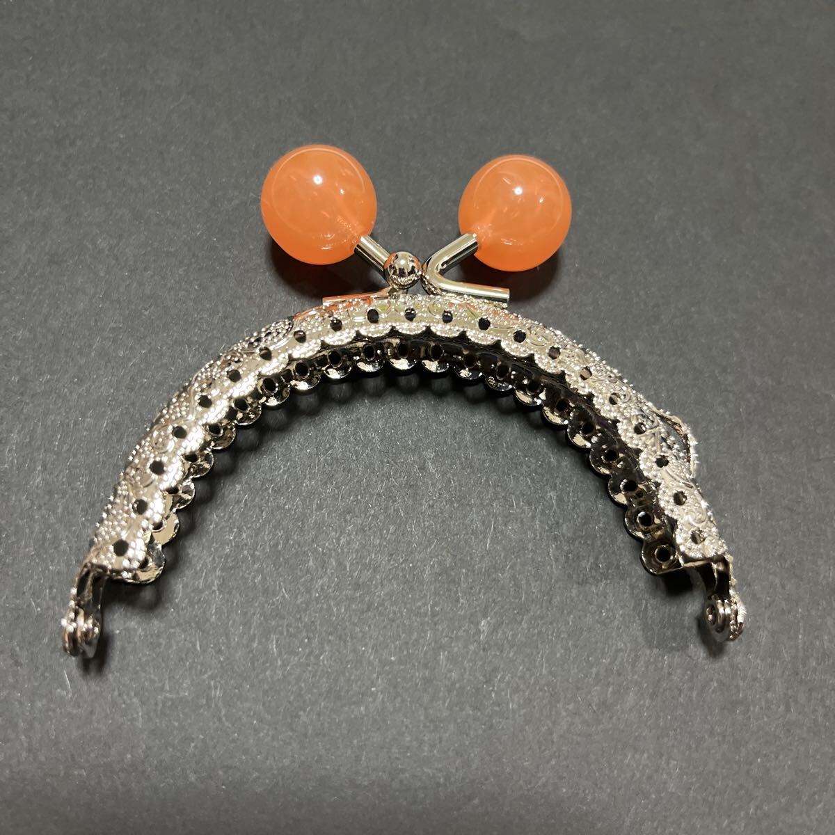 - がま口:乳白色*オレンジ口金* 丸型 *縫い付けタイプ*81