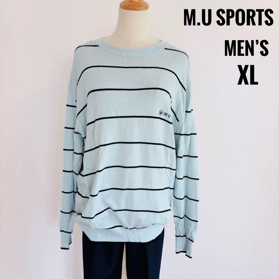 - M.U sports エミコ ウエサコ メンズ ゴルフウェア ボーダー 長袖ニット セーター XL ブルー