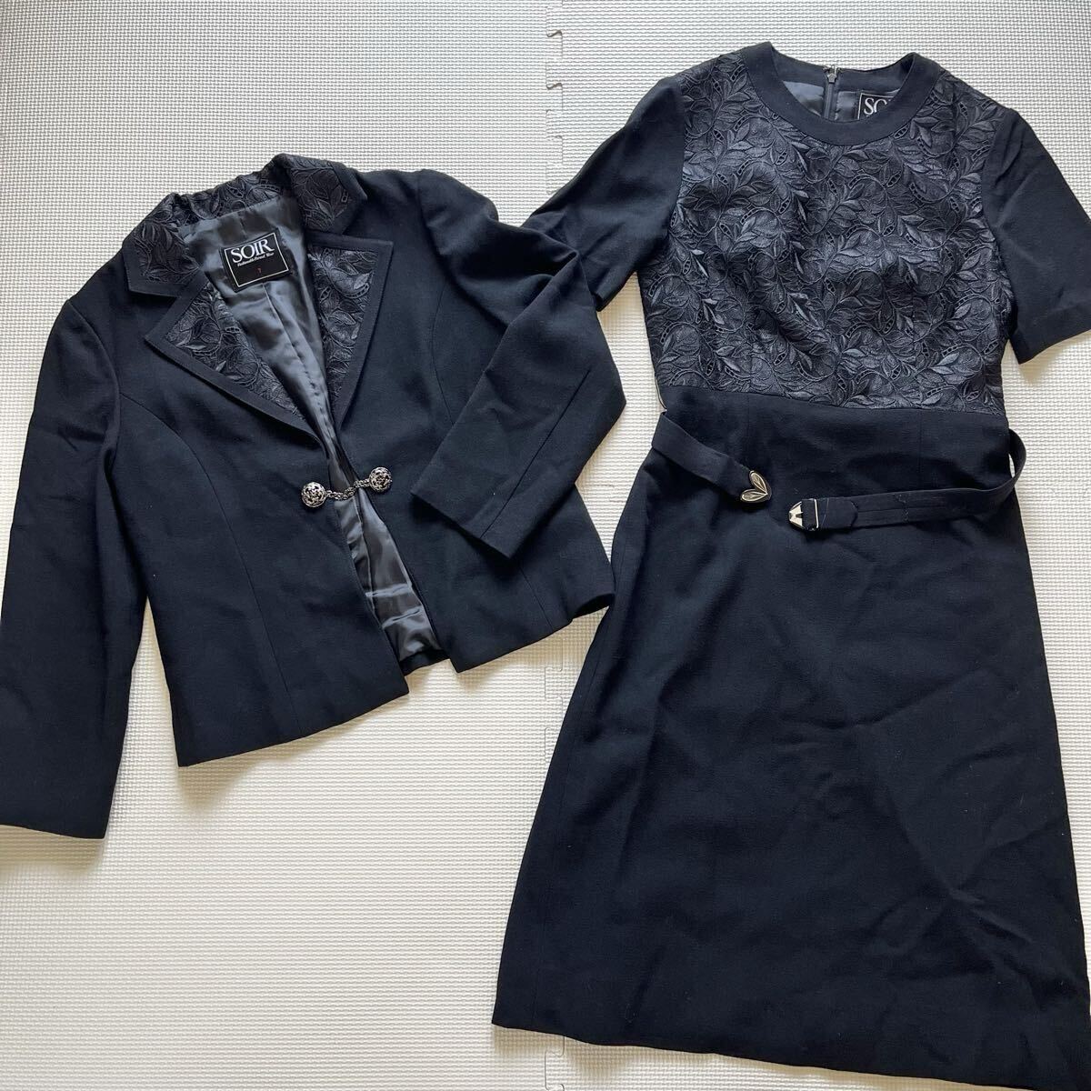 - ☆⑧美品 SOIR セットアップ アンサンブル フォーマル ジャケット ワンピース スカート 黒 ブラック 冠婚葬祭 7