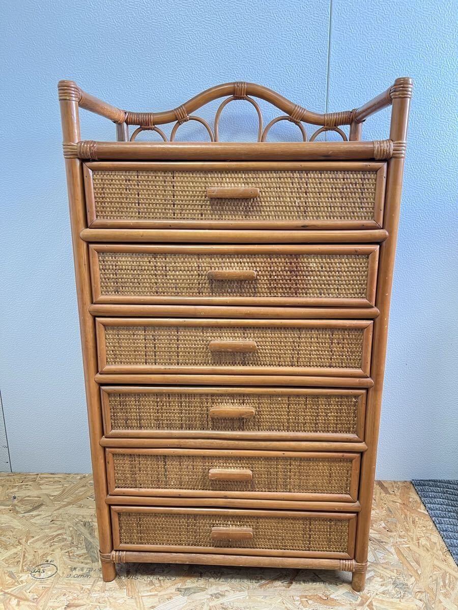 - ★☆ラタン 籐 6段 チェスト キャビネット ラック タンス 直接引取OK ②☆★
