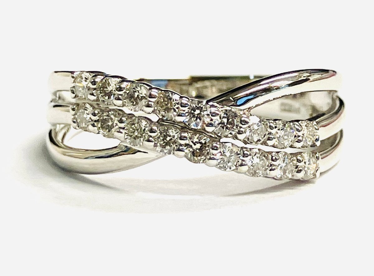 - qoj.ZEJ03 PT900 プラチナ 2連ダイヤモンド デザインリング 中石0.32ct 11号