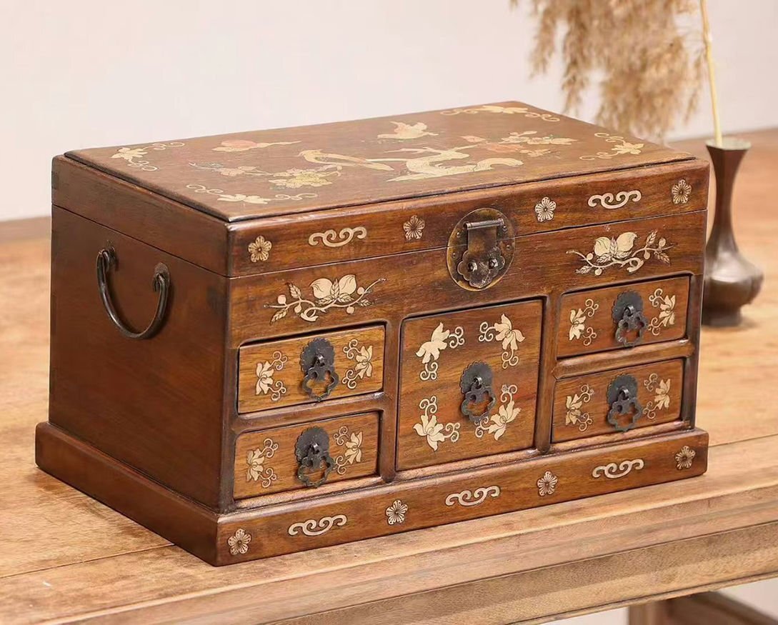 - ▼渡鶴羽▼R9190清時代 黄花梨多宝箱 黄花梨木細密細工★古置物★古賞物★古擺件★蒐集家放出★唐物
