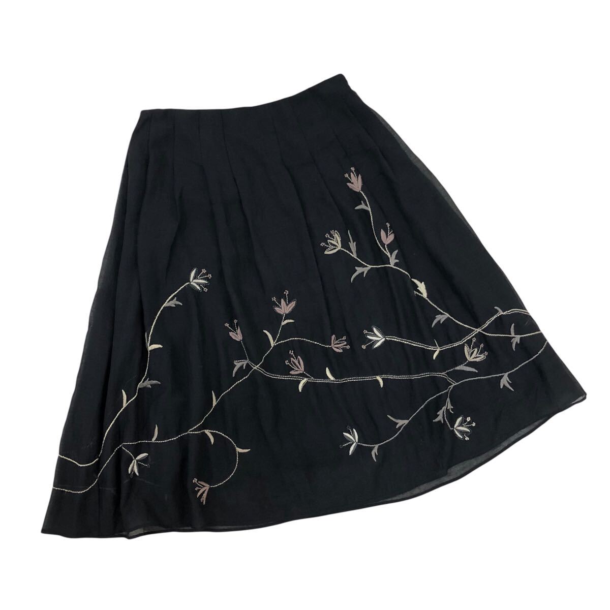 - Nm315-64 Sybilla シビラ 花柄 刺繍 タック ひざ丈 フレアスカート スカート ボトムス ブラック 黒 レディース M