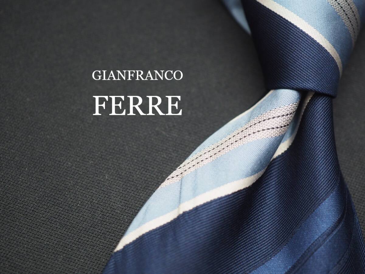 > 【GIANFRANCO FERRE ジャンフランコフェレ】 F1339 ネイビー系 SILK ブランド ネクタイ 古着 良品