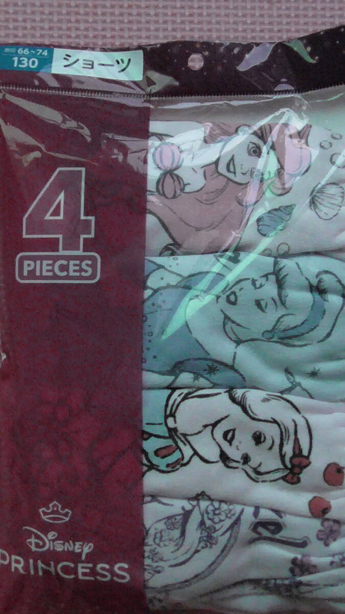 > 新品 130 4枚組 ディズニープリンセス ショーツ アリエル シンデレラ 白雪姫 ラプンツェル 綿100% 下着 女の子 パンツ 4枚セット 送料無料