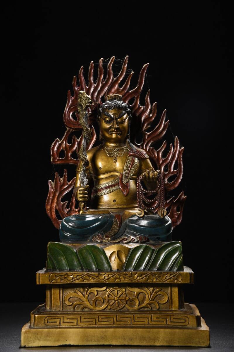 - ▽鴻▽ 銅製 金鍍 彩繪 不動明王像 仏像 宗教 仏教古美術 供養品 古賞物 古董品 時代物 稀少珍品 中国古玩 中国古美術