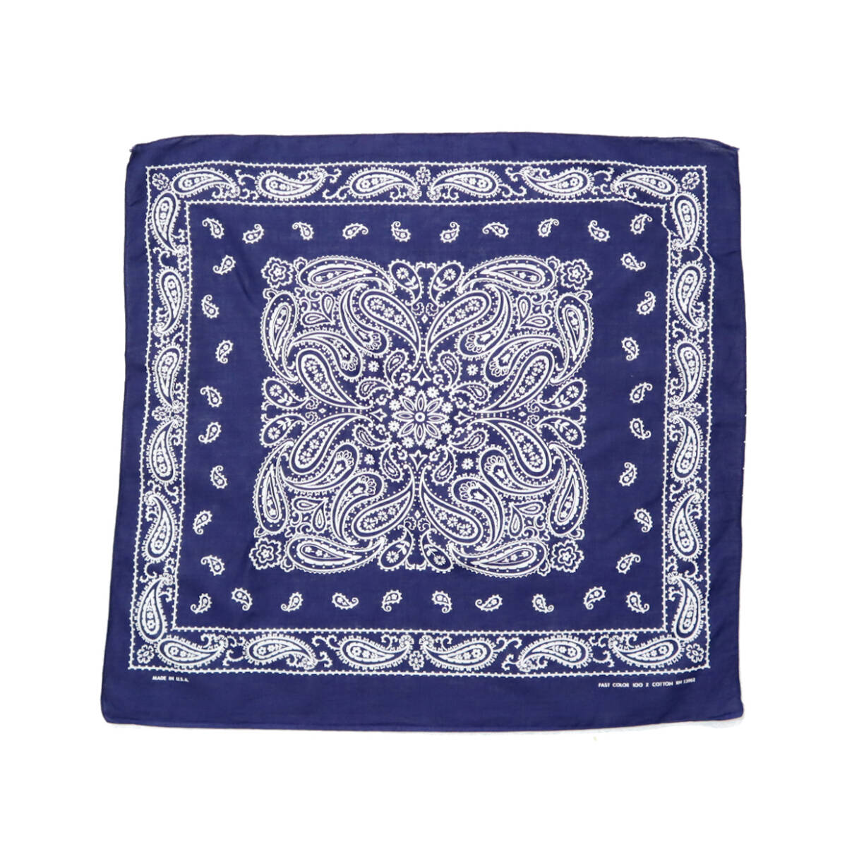 - 70s ビンテージ ペイズリー 花柄 バンダナ 紺 ネイビー FAST COLOR COTTON コットン RN13962 片耳 耳あり 古着 アメカジ ワーク 60s 70年代