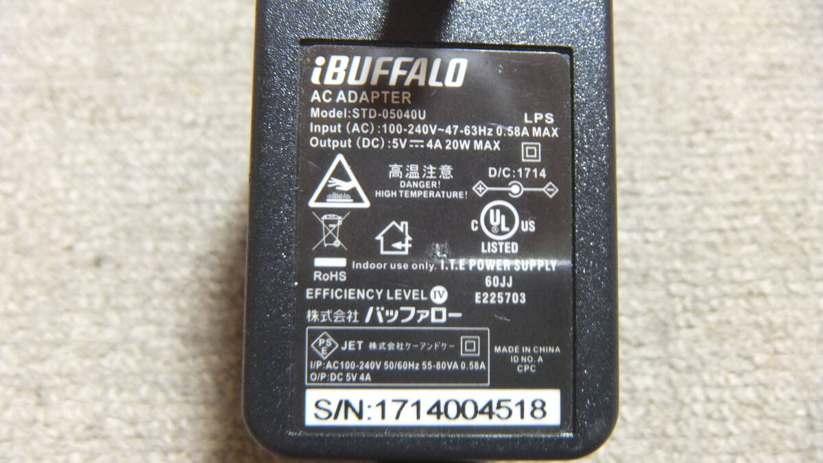 > 即決 送料無料 BUFFALO バッファロー ACアダプター STD-05040U DC5V 4A プラグ内外径 1.7 4.0mm センタープラス スイッチング