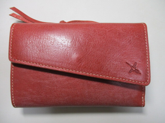 - 訳アリ 新品 財布 二つ折り かぶせ アインソフ ブランド レディース 本革 牛革 高価なイタリア製ベジタブルタンニンレザー レッド