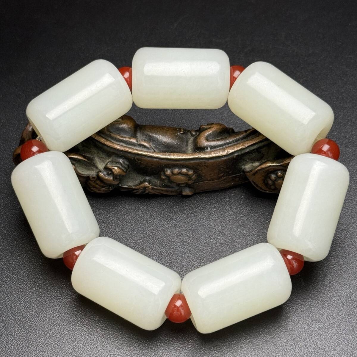 - 秘藏 清代 精美和田玉 桶珠ブレスレット 唐物 古玉彫 天然石 稀少珍品 古美術 古賞物 古置物 旧蔵 玉佩 裝身具 吊墜 817