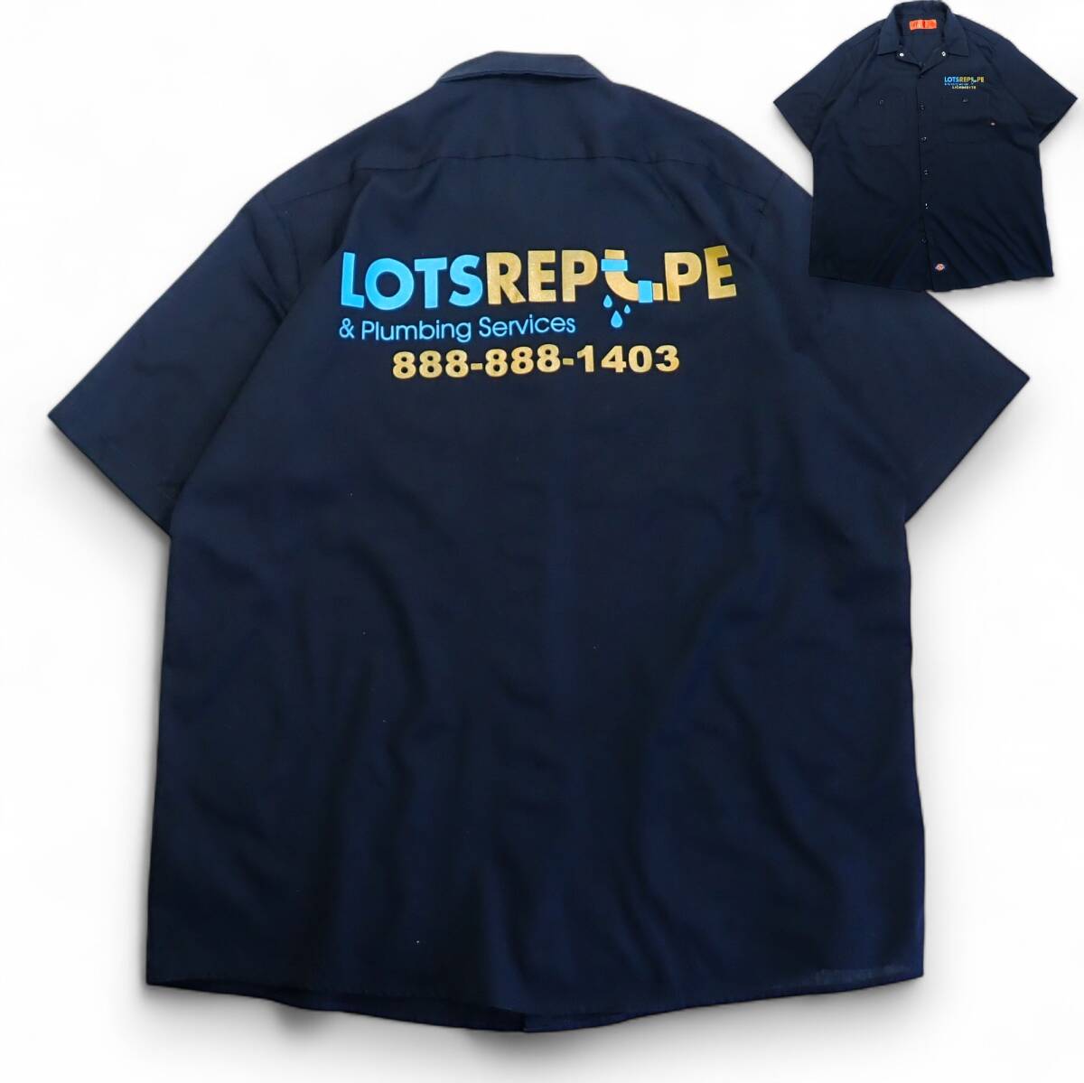- 6955/Dickies 半袖 ワークシャツ XL●LOTS REPiPE&Plumbing Services ディッキーズ●洗濯プレス済●ネコポス可●古着