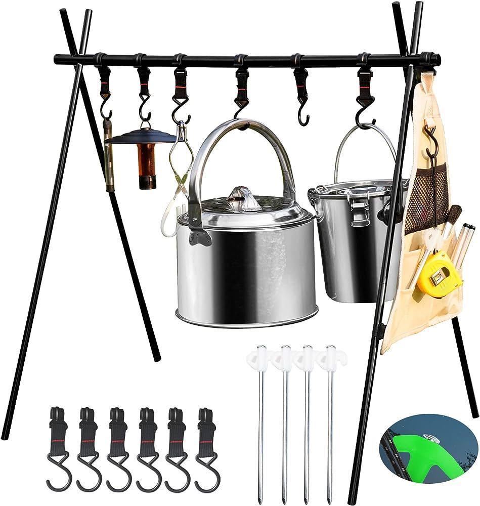 - ハンギングラック ランタンスタンド ランタンハンガー 折り畳める キャンプ ラック アウトドア アルミ合金 インディアンハンガー 収納袋付
