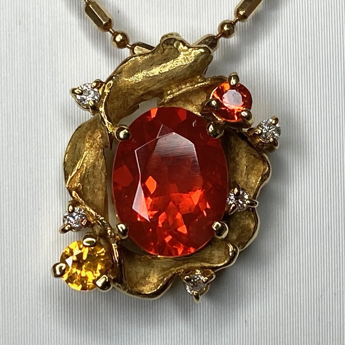 > ☆【KJC】K18 天然メキシコオパール(ファイヤー)1.34ct/ダイヤモンド 0.057ct ネックレス/ペンダント 鑑別書付き