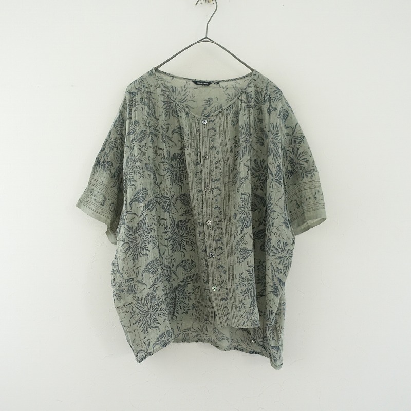 > 【2024/定価2.9万】パドカレ pas de calais *コットンプリントブラウス*36綿グリーン総柄シャツ製品染め(25-2507-636)【81H52】