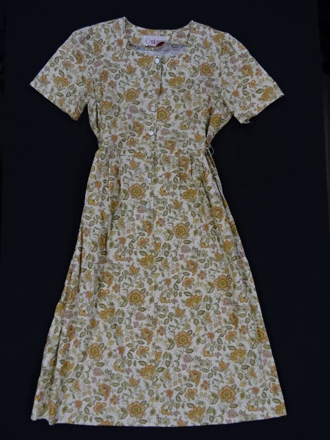 - 花柄ワンピース 黄色花柄 レトロワンピース ビンテージ ヴィンテージ 9 半袖 Canlemon 古着 USED レディース 可愛い 格安