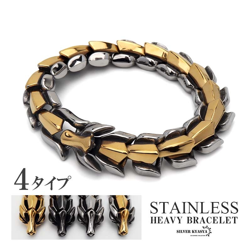 > (ゴールド×シルバー) 重厚 ドラゴンブレスレット ステンレス 316L ブレスレット メンズ ごつめ 金属アレルギー対応
