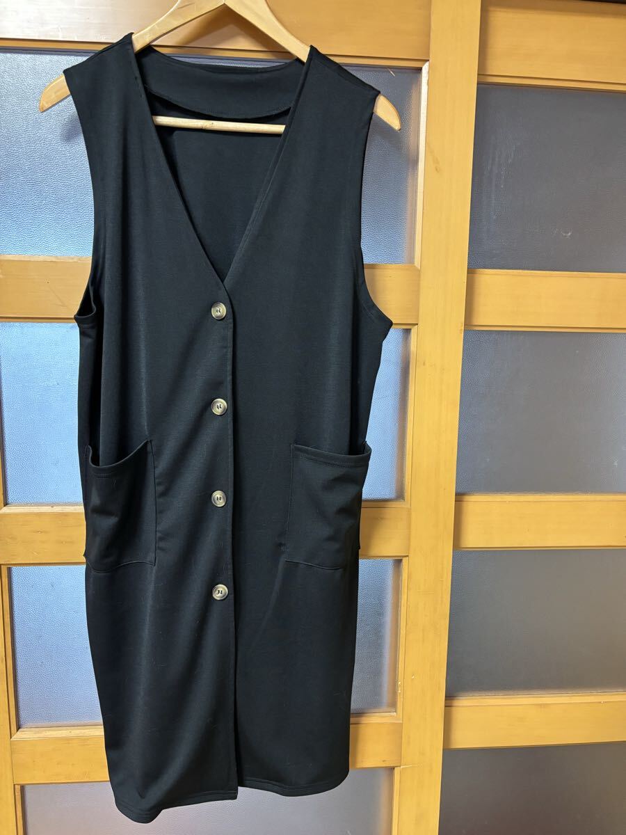 - 新品タグ付き ロング ベスト 黒 M〜L ゆったりサイズ 着て、動いて、心地よさ実感