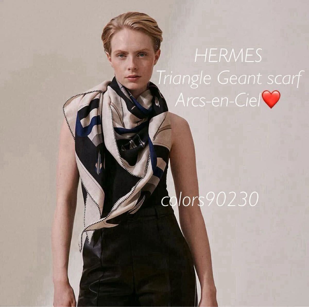 - 完売希少入手困難!未使用☆ エルメス トライアングルジェアン カシミヤシルク スカーフ ストール カシシル カレジェアン Arcs-en-Ciel 虹
