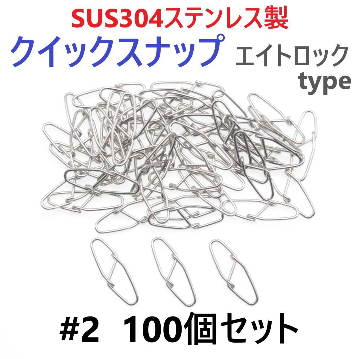 > 【送料150円】SUS304 ステンレス製 強力クイックスナップ エイトロックタイプ #2 100個セット 両開き ルアー 仕掛けに! 防錆 スナップ